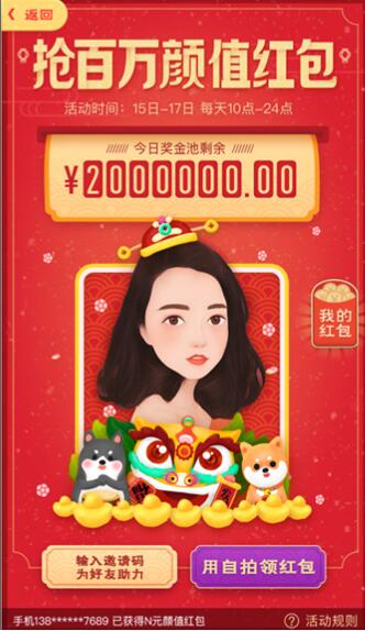 也就是說,根據你自拍顏值的高低,發放金額不等的紅包,顏值逆天的用戶有可能獲得最高188元的春節紅包。
