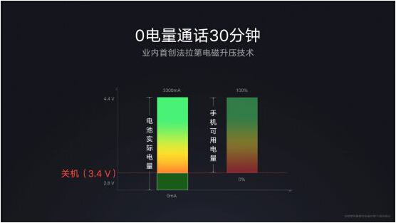 變頻省電設計,大幅提升電池壽命提升,法拉第升壓技術,0%電量通話30分鐘。標配18W快充充電器,常溫情況下三分鐘充滿50%,1個半小時充滿100%,充電速度迅捷可靠。