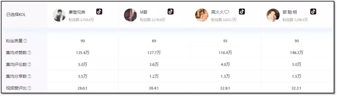 作為有音樂特質的短視頻社區,抖音平臺上的音樂達人,坐擁著十分可觀的粉絲量。從卡思數據上看,抖音TOP4音樂紅人的粉絲量均已過1000萬,與此同時,他們的粉絲增量、粉絲質量、粉絲互動數、視頻贊評比也是各垂直類別最高!以廣告主極為注重的“視頻評贊比”這個指標來看,排名前四的音樂KOL評贊比都在30:1-40:1的區間上下浮動,為各垂類之首,“好聽”、“喜歡”也成為了用戶評論中最為高頻出現的詞匯!