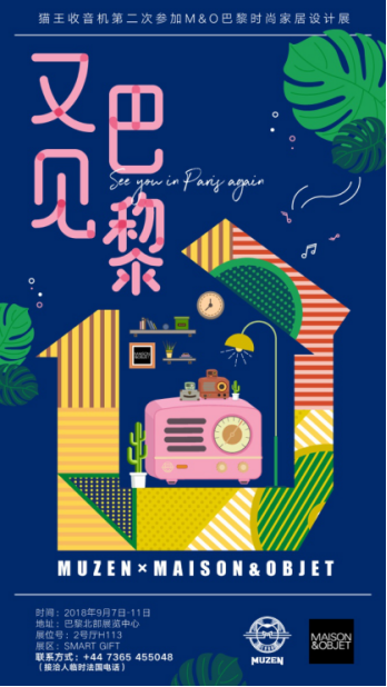 2017年9月8日,貓王收音機(jī)首次應(yīng)邀亮相全球設(shè)計(jì)行業(yè)最權(quán)威流行的風(fēng)向標(biāo)——巴黎時(shí)尚家居設(shè)計(jì)展(MAISON&OBJET,簡(jiǎn)稱 M&O),向全世界展現(xiàn)其獨(dú)特的產(chǎn)品魅力,吸引了各國(guó)時(shí)尚買(mǎi)手駐足關(guān)注體驗(yàn)。