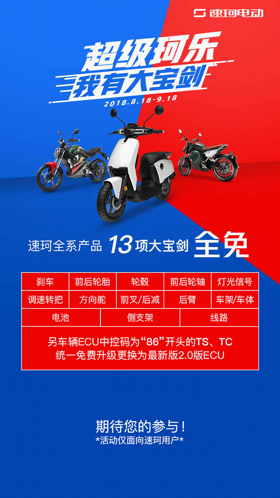 速珂電動,率先以跨騎鋰電車制造了一波城市出行潮流,2018年繼TS、TC之后發布了新品智能鋰電車CU,一個月小米眾金額達5498萬元,8月18日重塑騎行文化,線下60+門店同開,推出了為期一個月的“超級珂樂月”。
