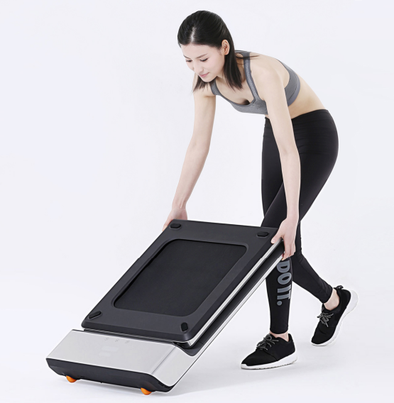更難得的是,WalkingPad走步機創新性地采用“鉸鏈”對折的方式,輕松折疊,折疊后,走步機的收納面積降低了一半,僅為0.44㎡,平時無法利用的夾縫、角落,均可成為它的棲身之所。不僅如此,走步機底部還設有兩個橙色滾輪,使它像行李箱一樣,推拉方便,移動自如。