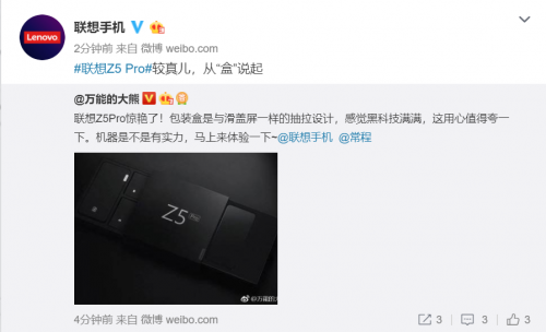 聯想手機官微的回復更是充滿了趣味性:較真兒,從“盒”說起。不過確實,連包裝盒都做的如此用心,想必聯想Z5 Pro會更令人驚艷。