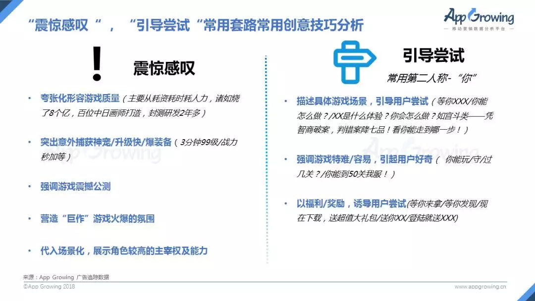 基于AI智能及機器學習的技術,App Growing對2018年上半年的手游廣告創意文案創意進行自動化分類。手游廣告創意主要圍繞震驚感嘆、引導嘗試 、終于發生 、制造稀缺 、從眾心理這五大套路,相關廣告數累計占比超過80%。而廣告創意文案中采用震驚感嘆文案套路的廣告占比最多,占37.11%,而愛奇藝廣告平臺則高達47.8%。