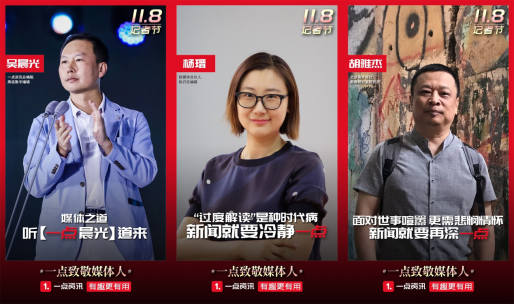 從邊防哨所到城市中心,從奧運現場到春運前線,他們長期扎根一線為記錄社會歷史做貢獻,卻甘于隱身在人們手中的報紙或是一塊塊手機屏幕背后。11月8日迎來第19個記者節,智能信息流平臺一點資訊發起“一點致敬媒體人”活動,聯合央廣網、環球網、每日經濟新聞、澎湃新聞、封面新聞、界面新聞、虎嗅、36Kr、鈦媒體、PingWest、AI財經社等近百家媒體及媒體人共同發聲,回溯媒體人的理想與堅守,為優秀的媒體從業者、內容創業者點贊。