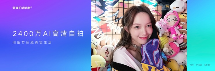 榮耀10青春版不單單在顏值上出彩,拍照方面也展現出不俗實力,搭載前置2400萬攝像頭,同時考慮到年輕人自拍場景的多樣化,榮耀10青春版對逆光自拍的AI算法進行了升級,通過多幀合成曝光,能夠實現逆光也清晰,此外榮耀10青春版還擁有屏幕補光功能,無論多暗的環境都能清晰定格每一幀。強大的自適應美顏算法,通過對用戶五官分析,為用戶定制美顏。在暗光場景下,榮耀10青春版的環形補光,拍出有質感的自拍大片。