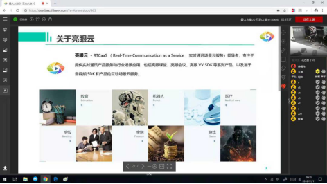 亮眼云(www.shinevv.com),RTCaaS場景化服務的提出者和領導者,提供的RTC+SaaS實時通信場景云解決方案商,在4K高清視頻、大并發、高可用、高可靠等方面有完善的技術和解決方案,目前有三個產品,面向音視頻RTC+PaaS的VVSDK。VVSDK支持公有云也支持私有部署,以及面向RTC+SaaS的亮眼課堂,亮眼會議產品。亮眼課堂是目前面向在線教育領域的互動課堂,支持一對一,小班課,以及高達50人的大班課。提供電子白板,以及各種互動功能。體驗非常好,亮眼云提供免費試用,可以立刻體驗實際效果!