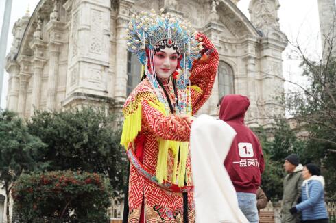 與國畫、中醫、武術并稱為“中國四大國粹”的京劇,以行當全面、表演成熟、氣勢宏美而聞名于世,被冠以“東方歌劇”的美譽。活動現場,優秀青年京劇乾旦演員魯威以“一點傳其大使”的身份表演傳統京劇《大登殿》。精巧細膩的油彩裝扮、華麗多彩的戲服,一副比女子還婀娜的扮相瞬間聚焦全場目光。
