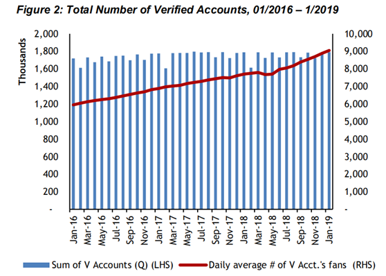 此外,微博KOL的增長也達到了頂峰,經過驗證的賬戶總數已經穩定了一段時間。