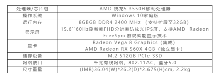華碩飛行堡壘6s游戲筆記本搭載了專為高性能游戲本所打造AMD銳龍5 3550H 35W標壓移動處理器,是國內上市的首款采用標壓銳龍3000系列移動處理器的游戲筆記本。銳龍5 3550H移動處理器基準頻率2.1 GHz,可自動超頻至3.7GHz,4核心8線程,35W銳龍加速,性能爆表,能支持玩家在高清畫質下暢玩各類3A游戲大作,隨時隨地盡享行云流水般游戲體驗。