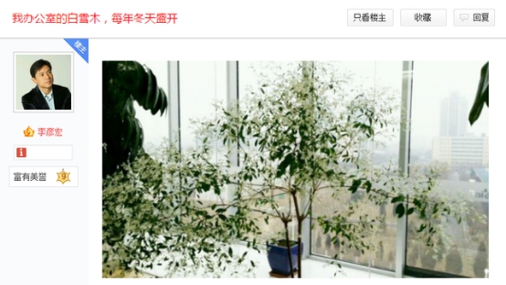 除了凍齡顏值,老李還酷愛花花草草,曾多次在百度貼吧發帖求購花草樹木,還多次曬出自己種的石榴花、星花木蘭、蝴蝶蘭,編輯的5個詞條,也全部跟植物相關。平時生人勿近的大佬暗地里的小癖好卻如此老干部畫風,格外有種反差萌呢。