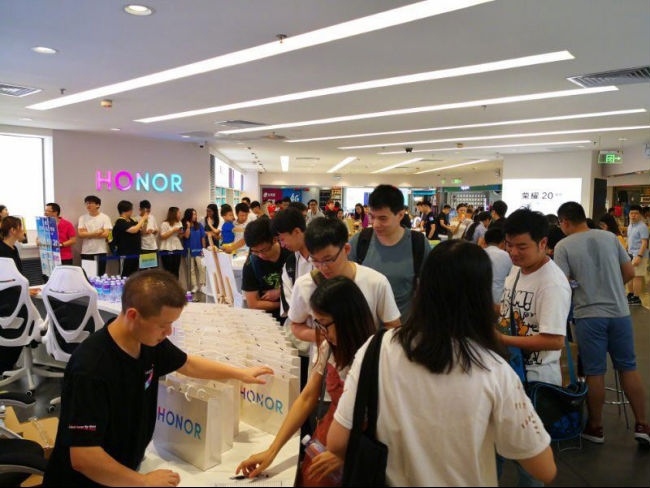 榮耀20系列除了在線上銷售成績斐然,在線下銷售也是人氣火爆,很多年輕人一早排起長隊,第一時間選購榮耀20系列新品手機。