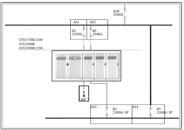 新型的并機系統(tǒng)在電氣架構(gòu)上還包括了公用的1,500kW靜態(tài)旁路,這種電氣架構(gòu)早就被證明可用性高于普通的多臺UPS直接并機的電氣架構(gòu)。新型的并機物理結(jié)構(gòu)其實也是模塊化的并機架構(gòu),可以根據(jù)用戶需求增減功率柜,目前市場上的UPS功率柜一般為200-300kW。靈活性與適應(yīng)性更高。