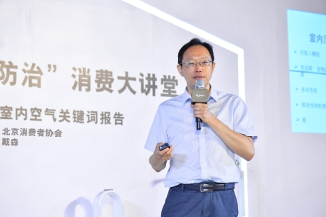 北京市消費者協會聯合戴森舉辦“室內污染防治”消費大講堂活動,北消協秘書長楊曉軍致辭