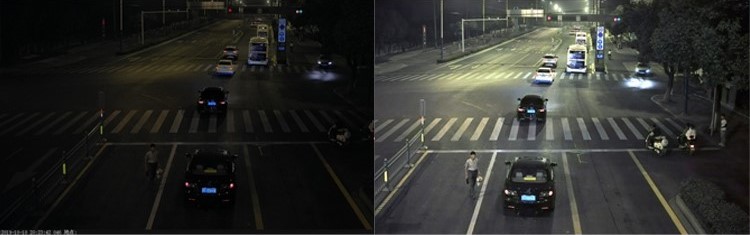 ▲實拍圖像 傳統車輛卡口 VS AI超微光車輛卡口