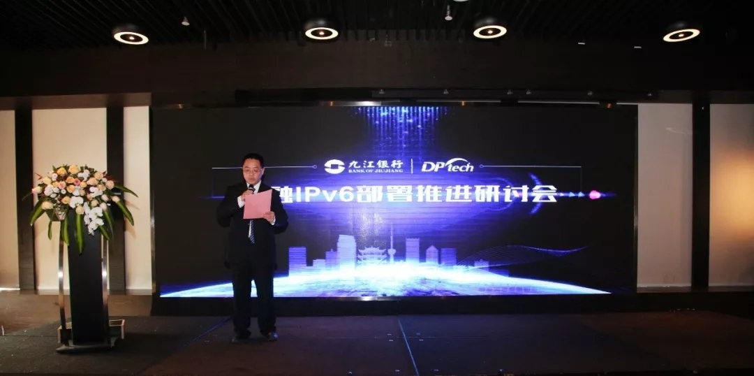 作為九江銀行IPv6改造方案的提供者與實施者,迪普科技副總裁李治代表迪普科技進行了名為“打贏IPv6規模部署攻堅戰 創新金融網絡安全價值鏈”的會議致辭。