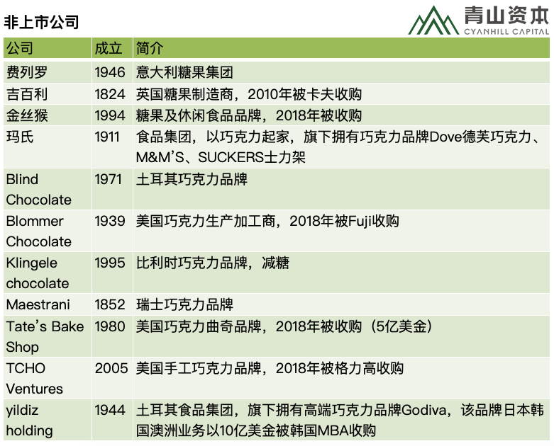 以下是巧克力賽道里的不同類型企業(yè)圖譜,包括有公開信息的初創(chuàng)企業(yè)。也希望您來補充,詳情見文末互動話題。