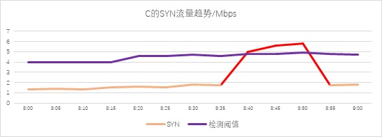 對比后不難發現,基于整體流量趨勢計算得到的檢測閾值偏向C地址,該閾值對于A和B并沒有實質性的效果。通過對單IP的流量分析和學習,可以給出更具體的檢測閾值。
