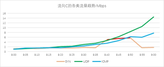 以下圖為例,在8:00到9:00期間,Probe3000產品采用每5分鐘學習一次的頻率對地址C制定的檢測閾值如下,經對比后發現,在明顯發現縮短學習頻率后,生成的檢測閾值在業務流量未達到默認上限前設備策略始終在不斷進行自我完善,很大程度降低了誤報的概率。