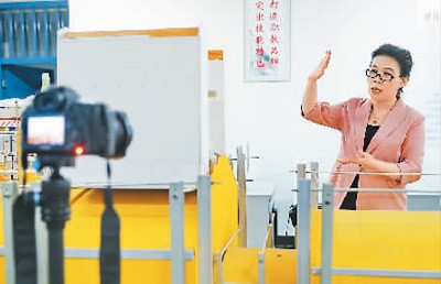 4月16日,河北建材職業技術學院教師孟秀華在錄制《玻璃機械操作與維護》課程。