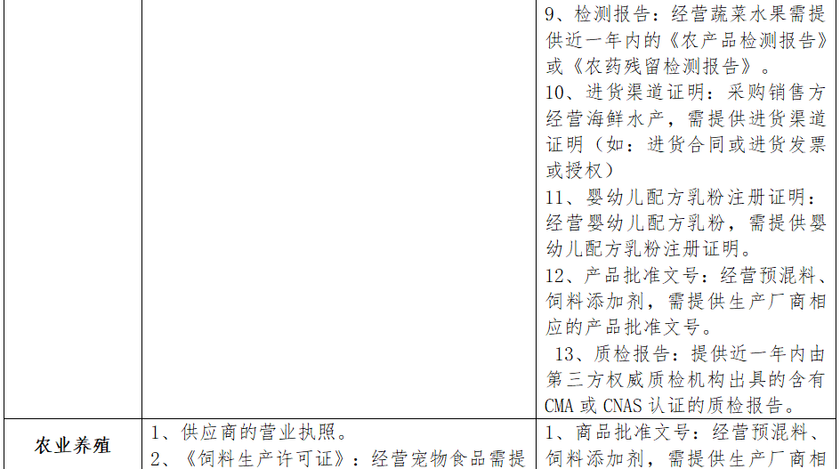 附:常見行業商家商品資質要求