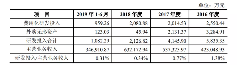 與營(yíng)銷的大手筆形成對(duì)比的是,良品鋪?zhàn)拥难邪l(fā)投入少可憐,2015年、2016年、2017年、2018年以及2019年在研發(fā)方面的投入分別為525萬(wàn)元、2550萬(wàn)元、2015萬(wàn)元、2081萬(wàn)元和2736.3萬(wàn)元。