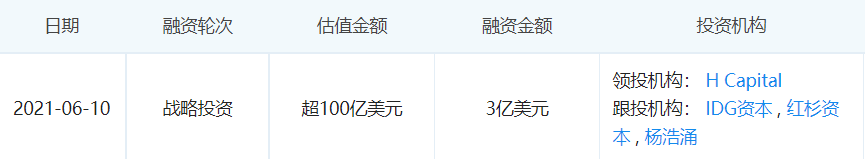 昨日,據《晚點 LatePost》報道,車好多集團完成了新一輪價值3億美元的融資,其中2億美元由H Capital 領投,紅杉資本中國基金、IDG資本跟投,1億美元由集團CEO楊浩涌個人出資。