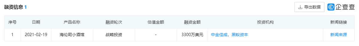 鑒于健康的現(xiàn)金流,海倫司成立至今共拿到了一輪融資,據(jù)企查查信息顯示為2021年2月19日由中金佳成、黑蟻資本共同投資的3000萬美元戰(zhàn)略投資。