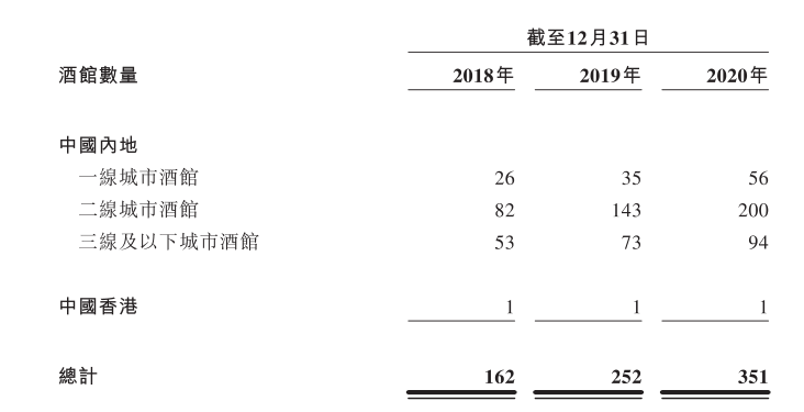 其他數(shù)據(jù)方面,海倫司在記錄期內(nèi)酒館數(shù)量保持高速增長。于2018年、2019年及2020年,共擁有新開酒館數(shù)量為62家、93家及105家,復(fù)合年增長率為47.2%。