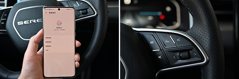 在其他一些搭載HUAWEI HiCar的車型上,華為智慧助手一般是以第二個獨立功能存在的,而賽力斯華為智選SF5將其融入到了HUAWEI HiCar映射模式中,成了其中一個核心功能 。它主要是以語音助手為中心,對其他功能如導航、媒體播放、電話等進行控制操作。喚醒方式有兩種,你可以通過手機端設置的喚醒詞,或是方向盤上的語音按鍵來操作,同時也兼容原車機系統的“小賽”喚醒。