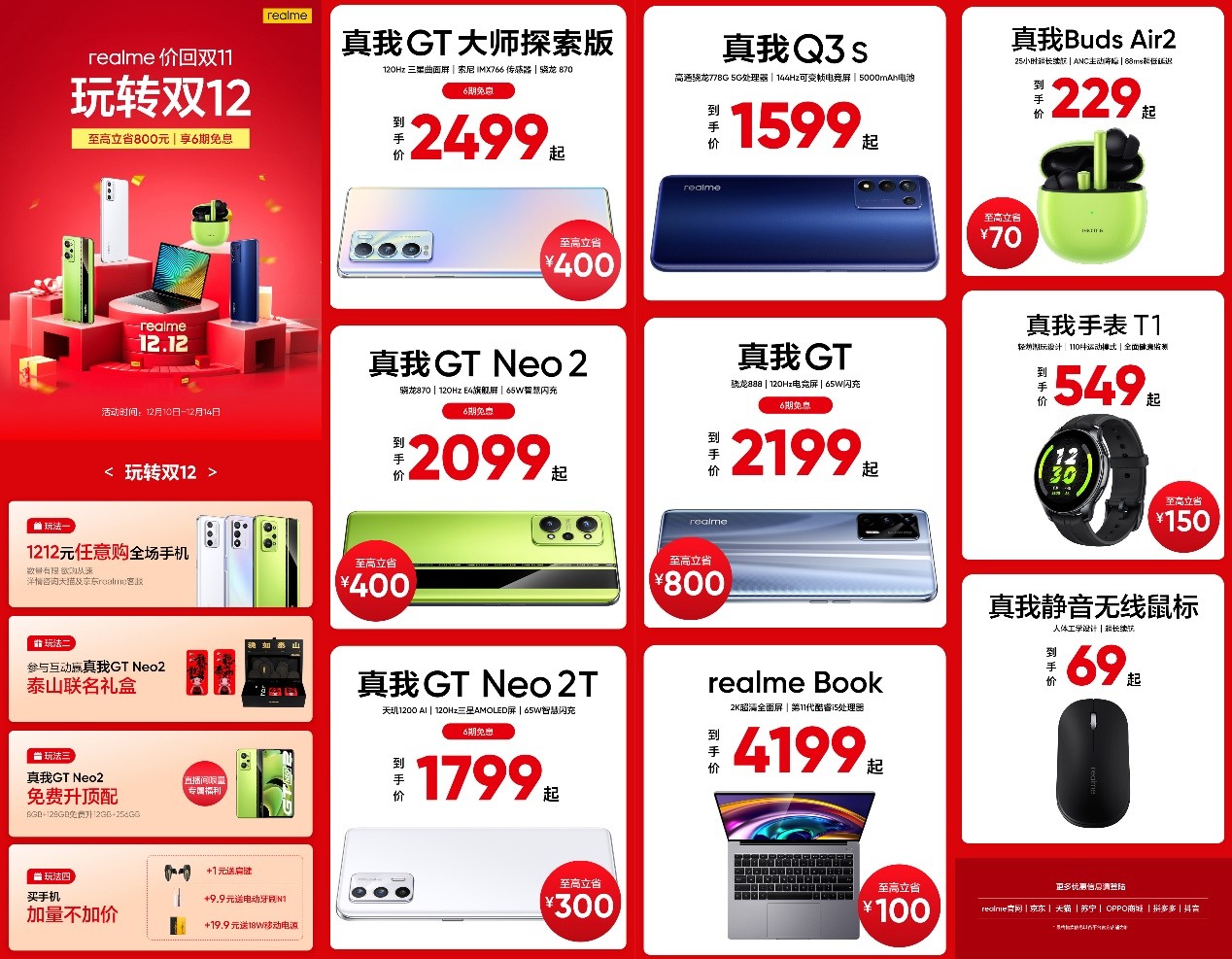 除了真我GT Neo2之外,realme全系列王牌產品均有超值鉅惠,真我GT大師探索版到手價2499元起、真我GT Neo2T到手價1799元起、真我Q3s到手價1599元起、真我GT更是直降800元到手價僅2199元起。如此多的選擇,總有一款能滿足你的需求,趕快行動起來吧!