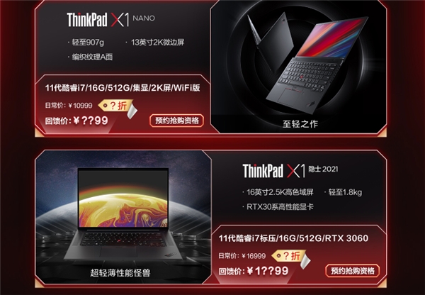 作為“小黑粉們”的年終盛典,此次ThinkPad 29's 年度會員日活動最大的看頭還是產品優惠力度。從目前的預告內容來看,ThinkPad旗下的多款旗艦產品也都將參與此次冰點價促銷,涵蓋了折疊屏筆記本ThinkPad X1 Fold、突破萬元大關的商務神機ThinkPad X1 Carbon 2021、至輕之作的ThinkPad X1 Nano、素有“超輕薄性能怪獸”之稱的ThinkPad X1 隱士 2021等等。雖然暫未完全公開此次會員日回饋老粉們的活動售價,但已經可以初見端倪,極有可能是全年最低的冰點價。