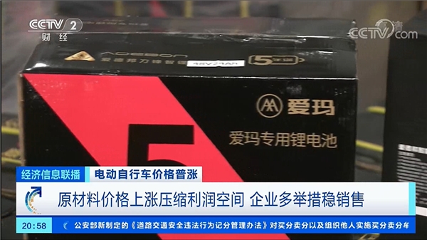 3月29日,央視CCTV財經頻道《經濟信息聯播》欄目,針對超標電動自行車退市,換新車遇漲價,進行了深度報道。電動車行業頭部企業——愛瑪積極踐行企業責任擔當,開展了一系列維穩市場價格,保障消費者優惠權益的舉措,獲得央視點贊!