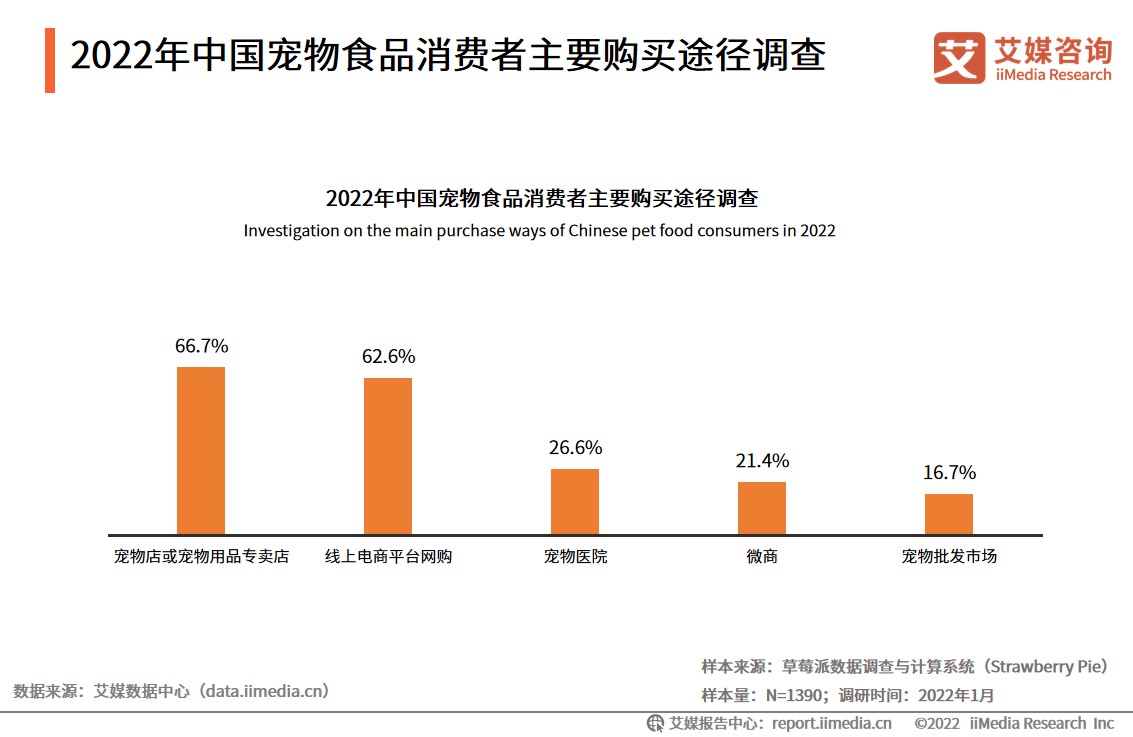 2022年中國(guó)寵物食品消費(fèi)者主要購(gòu)買(mǎi)途徑調(diào)查