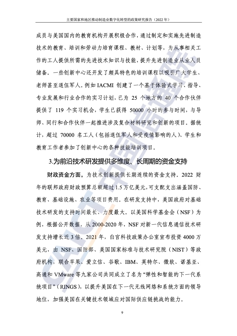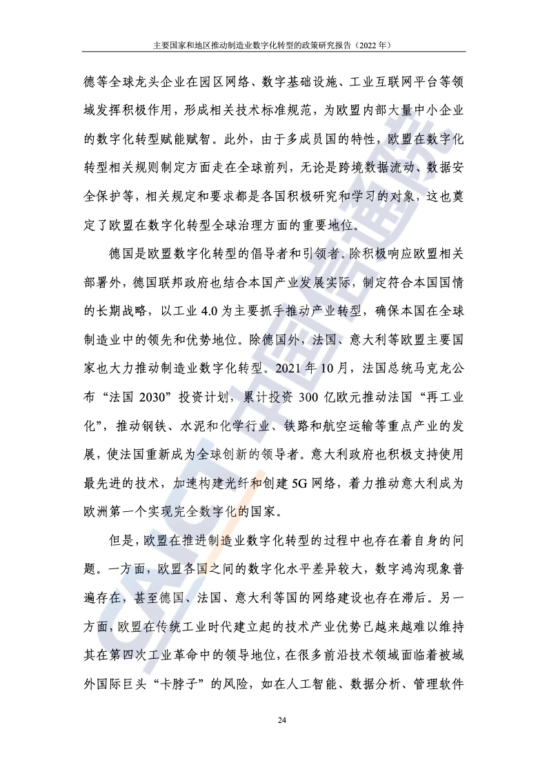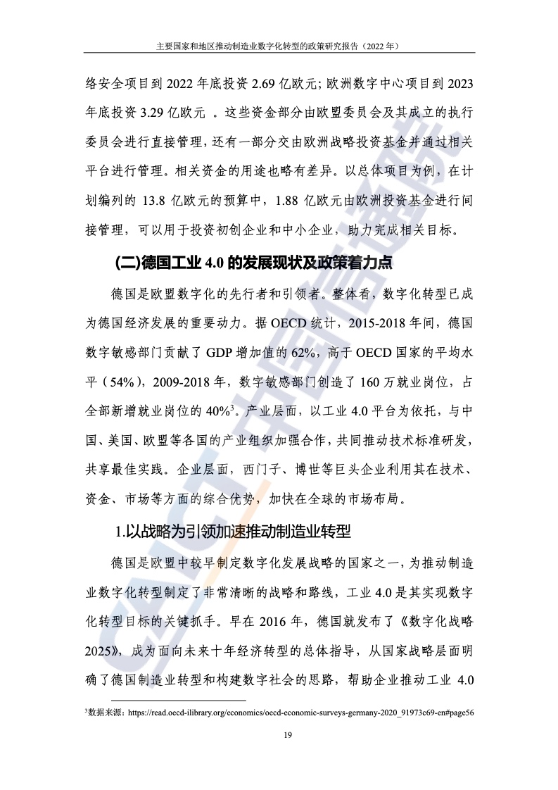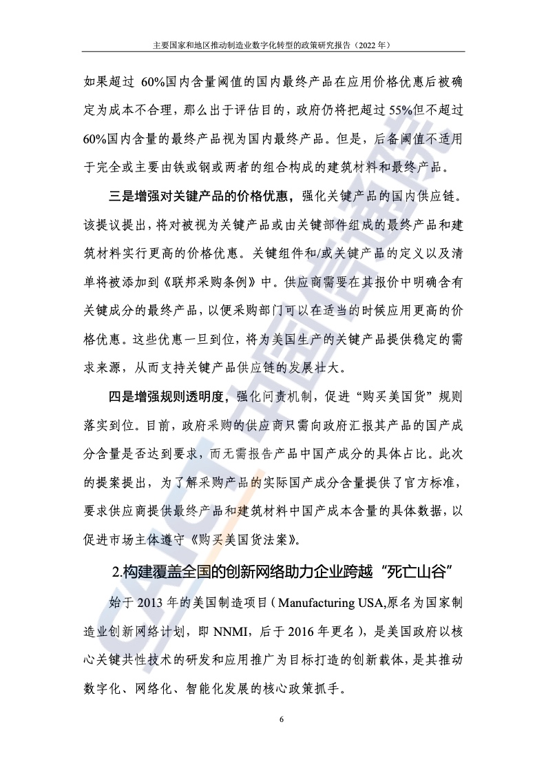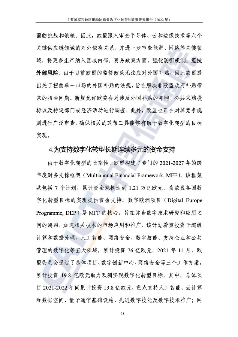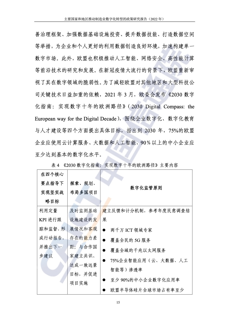 近年來,美國、歐盟、德國、日本等主要國家和地區(qū)先后推出了相關(guān)政策,結(jié)合本國(地區(qū))的要素稟賦、產(chǎn)業(yè)特色等,從不同方向切入和著力,促進制造業(yè)數(shù)字化轉(zhuǎn)型發(fā)展。美國制造業(yè)多處于產(chǎn)業(yè)鏈上游,且巨頭企業(yè)數(shù)量多、實力強,因此通過“政府+企業(yè)”的二元路徑,重點聚焦先進制造業(yè)領(lǐng)域,通過調(diào)整政府采購規(guī)則、構(gòu)建創(chuàng)新網(wǎng)絡(luò)、加大研發(fā)支持、強化規(guī)范指引等方式,持續(xù)加大對本國制造業(yè)及其數(shù)字化轉(zhuǎn)型的扶持力度。歐盟將數(shù)字化作為構(gòu)建數(shù)字單一市場的重要支柱之一全力推進,制造業(yè)是重點領(lǐng)域。