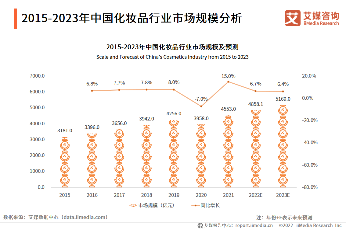 2015-2023年中國化妝品行業(yè)市場(chǎng)規(guī)模分析
