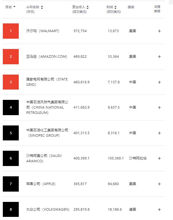 格力、京東等中國企業都在這個排行榜中。今年所有上榜公司的凈利潤總和約為3.1萬億美元,同比大幅上漲88%,可以看到雖然在新冠疫情的影響下,全球經濟也在艱難前行。蘋果公司排名第七,成為手機廠商中營收最高的企業。