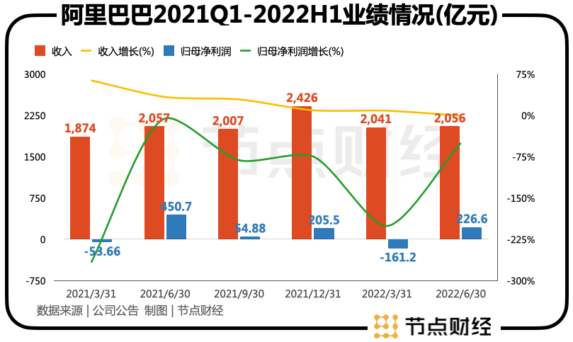 2022年4-6月,阿里收入為2055.55億元,同比沒有增長。其中,中國商業(yè)收入同比下降1%至1419.35億元,云業(yè)務收入同比增長10%至176.85億元,國際商業(yè)收入同比增長2%至154.51億元。