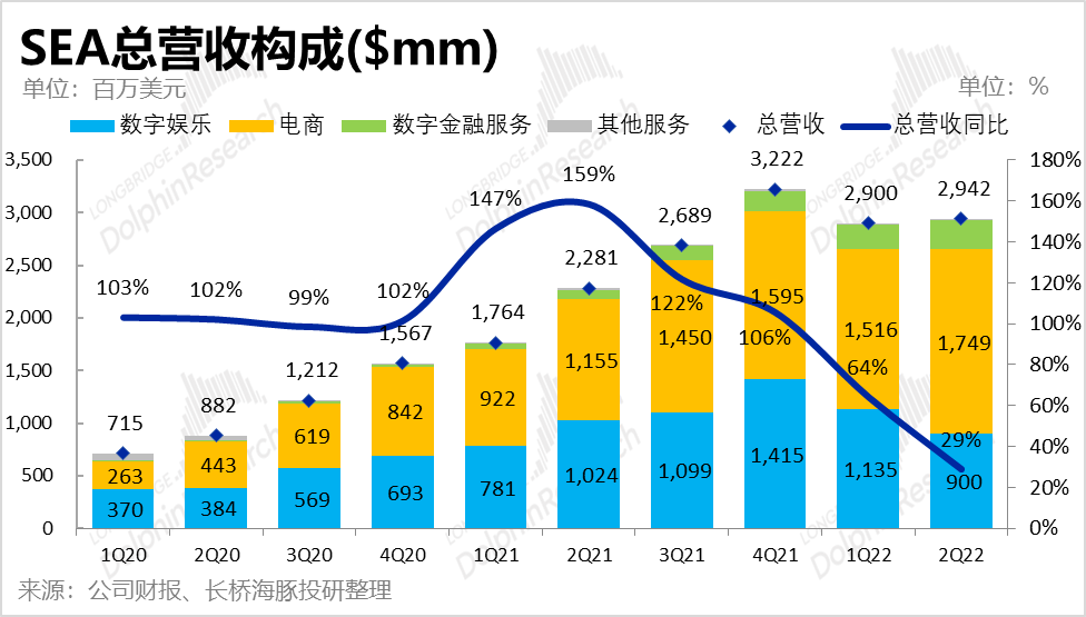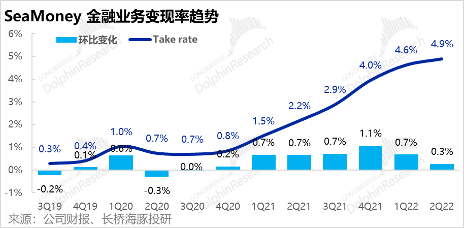 3.SeaMoney數字金融:金融業務則仍在高速成長中,本季度實現支付額(TPV)57億美元,環比凈增額再創新高。同時或由于非支付類收入增長,本季度變現率再度環比提升30基點到4.9%,推動營收繼續同比暴漲2.1倍至2.8億美元。