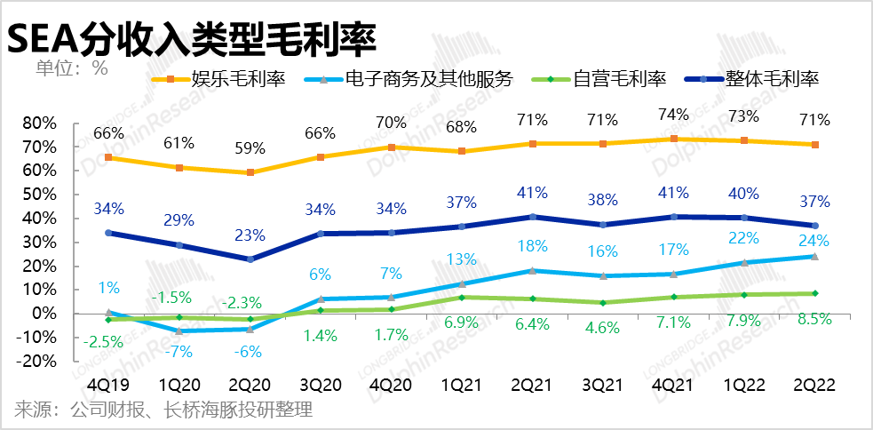 不過營收增速顯著高于GMV增速,還是反映了公司為提升電商業務盈利能力,提高變現率的舉措。經計算,本季度Shopee電商業務的變現率為7.5%,環比再度增加了20個基點。