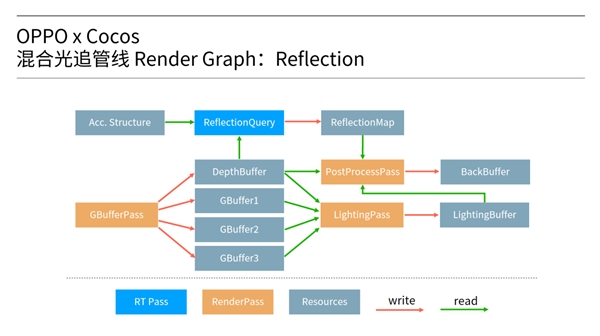 萬物互融的關鍵是突破異構設備之間的隔閡,這也正是 Cocos 的擅長之處。在分享中,Panda 展示了基于傳統光柵化管線、光線追蹤管線與混合渲染管線的Demo場景,并介紹了 Cocos 引擎靈活的渲染流程調整方案和資源生命周期判斷,二者疊加即可智能推導出更適合當前設備的資源分配方案,最終達到低功耗、高性能、強體驗的目的。