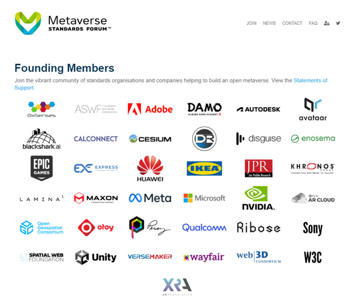 在今年六月,OpenXR標準的背后組織Khronos Group聯合Meta、微軟、高通、Unity、Epic Games、阿里巴巴、華為和Adobe等37家機構和企業宣布成立了Metaverse Standards Forum元宇宙標準論壇。
