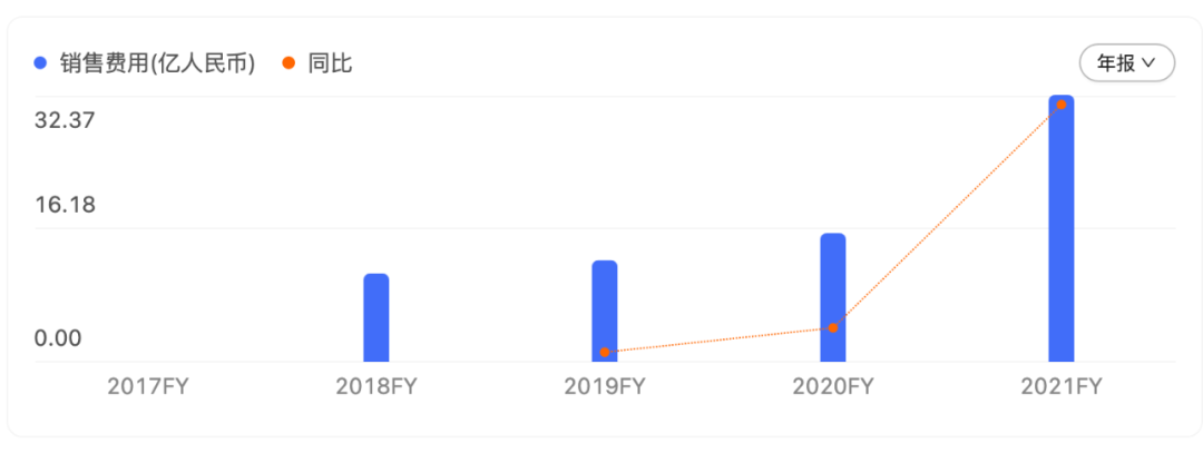 在營銷上,科沃斯同樣非常舍得投入,2021財年科沃斯營銷費用為32.37億,同比激增107.39%。對比2018-2021年同期的營銷費用占營業收入的比重,分別為18.83%、23.19%、21.58%、24.74%。