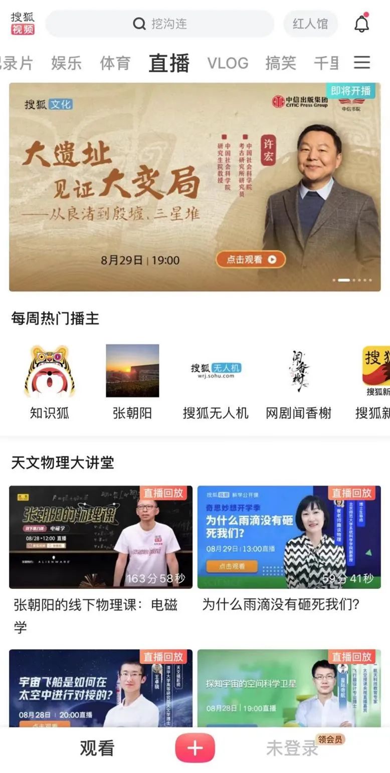 搜狐視頻的知識直播嘗試開始得更早。早在張朝陽做物理課直播之前,2019年9月,搜狐視頻便推出了一系列知識直播;2021年,搜狐視頻直播全面打造知識直播平臺,在健康、情感、母嬰、汽車、時尚、法律等領域推出眾多有深度的直播內容。