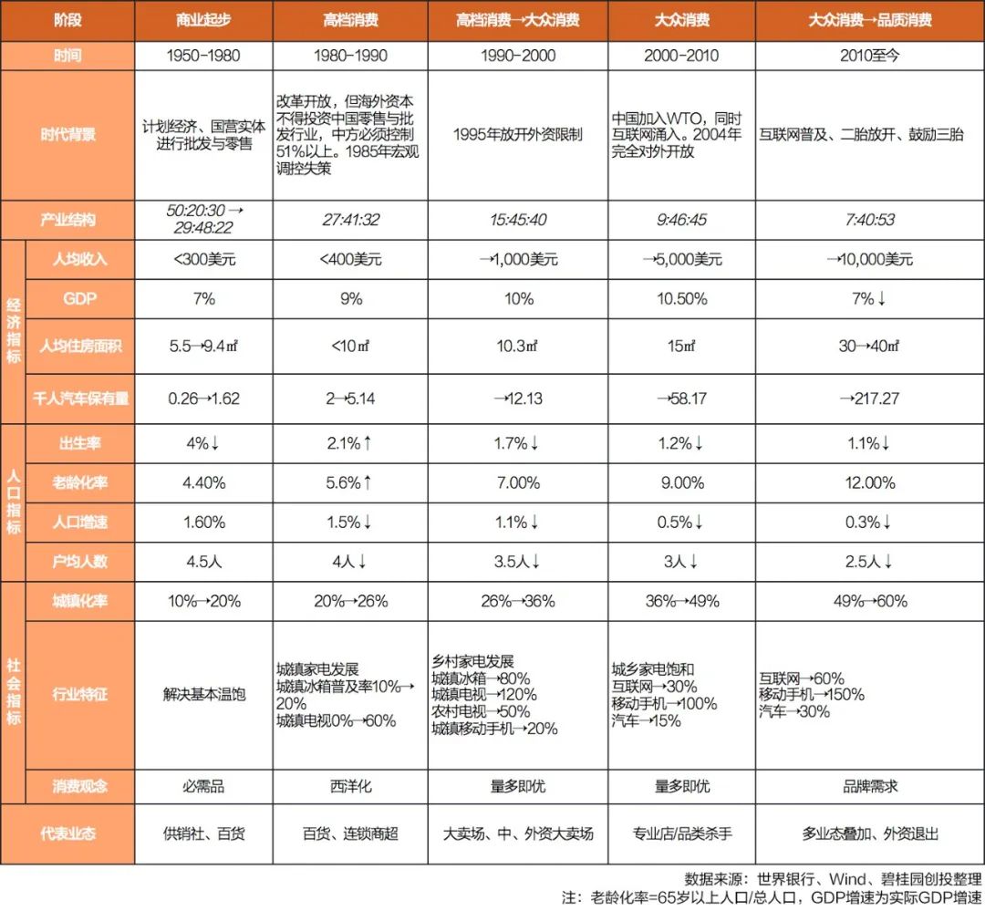 報告回顧了建國以來中國線下商超行業的演變,并總結了深刻影響業態發展的產業結構、經濟指標、人口與社會環境等因素。