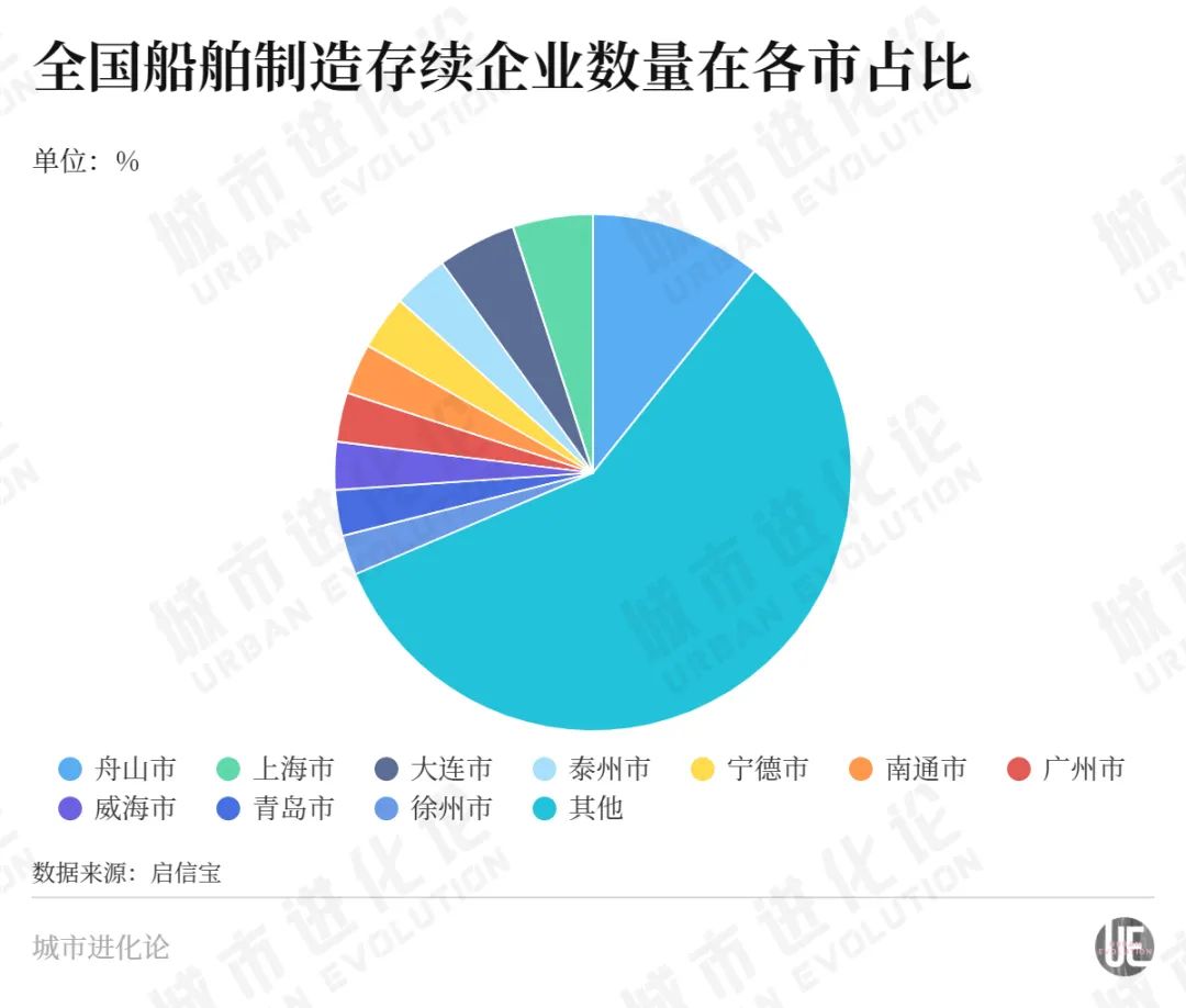 一輪洗牌下,行業版圖得以重塑。根據華西證券一份研報顯示,2009年至2016年全國約有140家船廠關停倒閉、90多家被兼并收購。如今造船業集中度更高——今年1~7月,造船完工量前10家企業集中度水平為70%左右,主要集中在江蘇、上海和遼寧等地。