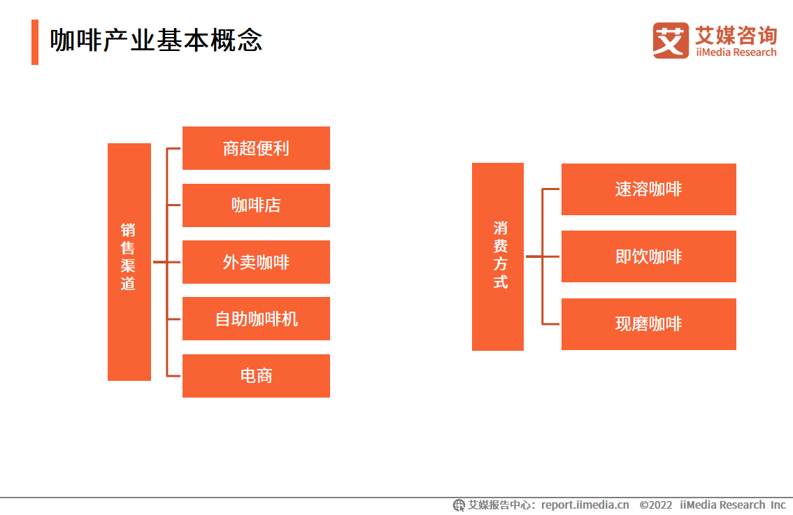 咖啡的銷售渠道分別有商超便利、咖啡店、自助咖啡機(jī)、電商和外賣咖啡等幾類,而根據(jù)消費(fèi)方式,咖啡又分為速溶咖啡、即飲咖啡和現(xiàn)磨咖啡。