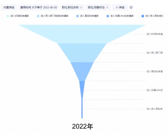 首先,“招聘漏斗”是伏達半導體最為核心的指導思想之一。王青用其校招成績舉例展示,通過2021年的漏斗圖形和2022年的漏斗圖形對比,王青直觀可視地認識到了企業目前的招聘轉化率是什么?招聘能力如何?今后的招聘側重方向該如何調整?