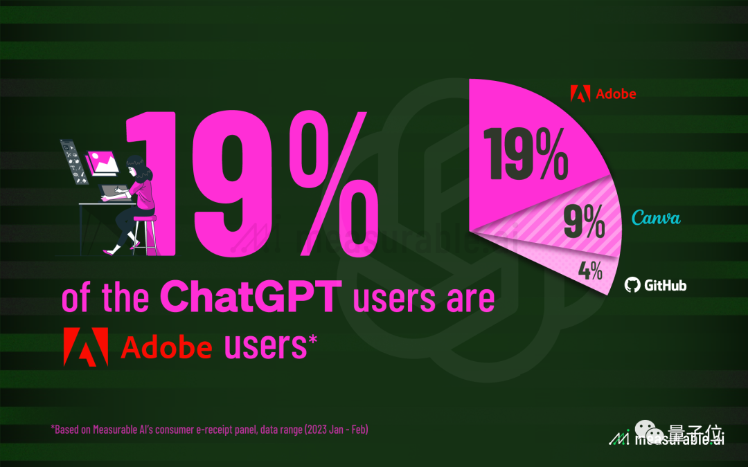 結果顯示,用Adobe的人占ChatGPT用戶總數18.5%,然后是用Canva的,約占9.2%;這兩個軟件都是設計者的繪圖寶貝。
