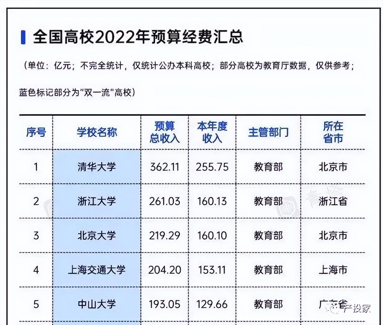 不要小看國家給予的補貼,國家在高等教育的投入非常大,我國的重點高校的主管部門幾乎都是教育部主管,由教育部直接撥款或者各省市的政府直接撥款。2022年,清華大學每年受到國家的投入高達255.75億元,穩居全國第一,且領先第二的浙江大學接近100億元。